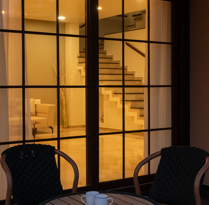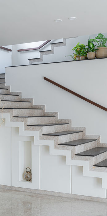 Raama Nirvanta is 4BHK housing scheme located in one of the posh neighbourhoods of the city. The interior design of the sample house here is kept open for incremental development. However, the spaces are articulated with basic colour scheme and furniture designed for a head start to styling the interior spaces.
